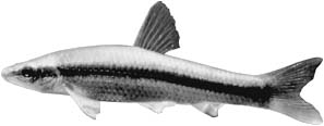 成魚の全長は15cm。鼻先から尾ビレの二股部にかけ、体側に黒色の一本線が入り、おしゃれな印象を与える魚です。分布は、福井県、滋賀県、三重県以西の本州と四国の一部、九州北部です。比較的広域に分布する魚で -