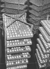▲ボール紙製の枠の中にきれいにつくられた繭。(昭和47年、長浜市国友町で)
