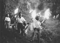 ▲木之本町千田の野神祭の虫送り松明。北陸自動車道の建設で山が削られたため、この年が最後になりました。(昭和52年)