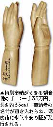 実は、勧進を始めて間もなく、ある人が大金を持って来られて何百本もの手を買うといわれたことがあった。けど、それはご丁重にお断りした。