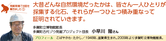 その発見から20年目の2013(平成25)年に、私たちは多賀町古代ゾウ発掘プロジェクトを立ち上げました。20年前と同じように滋賀鉱産様のご協力・ご支援を受けて現在地の発掘を続けているところです。