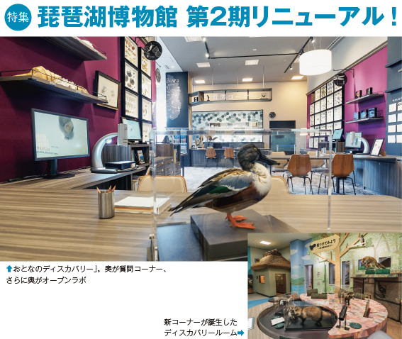 滋賀県立琵琶湖博物館 住 所:草津市下物町1091連絡先:TEL 077(568)4811 FAX 077(568)4850休館日:毎週月曜日(休日の場合は開館)、その他臨時休館あり観覧料:常設展示:一般750円、高・大学生400円、小・中学生 無料 ※企画展示をご覧になるには別途料金が必要です。 HP:https://www.biwahaku.jp/アクセス:JR草津駅西口から近江鉄道バス「びわこ博物館」行きで「びわこ博物館」下車/名神栗東ICから車で約30分 1 2 3 4 5 6 Vol.130 一覧ページ Vol.132