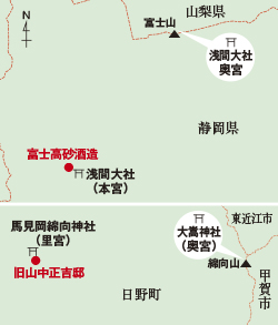 出店先は富士信仰の篤い地域で、富士山頂の薬師堂(現在の浅間大社※4奥宮に位置)にあった薬師如来像が明治の廃仏毀釈で廃棄されそうになった時、初代正吉が自分の店の酒蔵にかくまったのだそうです。いまもその蔵に薬師像が安置され、「薬師蔵」と呼ばれています。そんなことから浅間大社とつながりが深くなり、近江の人を富士登山に案内したり、馬見岡綿向神社にも富士浅間神社を勧請して、祭礼日には本宅で枇杷葉湯※5を町の人たちに振る舞われたりしたそうです。