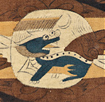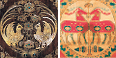 ※5 (右)「紫檀螺鈿宝相華鳳凰文平胡籙」部分、(左)「双鹿連珠円文外衣」部分(中央または西アジア 8世紀)MIHO MUSEUM蔵