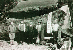 大きすぎるから、この場で全部板にしてほしいということになり、大阪から2人の木挽を連れてきて、私も入れて4人で、板にアゲタわけです。