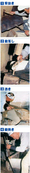 長峰 大きく分けると、鋼板をノコギリの形にする「黒打ち」、表面をカンナですく「透き」、歯に焼きを入れる「歯焼き」の3工程があり、多くの製造所では分業で行われていました。
