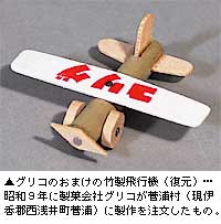 藤野 有坂與太郎さんの『郷土玩具展望』に書いておられるもので、探したのですが見つからないものがいくつかあります。例えば近江八幡の長命寺の「穀屋寺宝鈴」は、製造期間がとても短かったらしく、存在したのは確かですが、見つかりませんでした。それに竹生島の「竹笛」も。なかには白鬚神社の「かざぐるま」や菅浦の「竹製飛行機」のように実物を見たことのある人の記憶を頼りに復元したものもありますが。