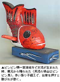 お書きになるのは草津の「ピンピン鯛」か「大津絵」関係のものくらいでさっとすませて、関西在住のオーソリティである川崎巨泉先生から、京都におられた田中緑紅先生に至るまで、「小幡人形」を無視されたのが不思議でしかたないのです。これは、やっと昭和15年に、有坂與太郎さんの『郷土玩具展望』で初めて登場するわけです。その後の本にも近江の玩具の紹介というのはほとんどないように思います。