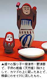 この辺りは男節句、女節句なしで、旧暦の3月3日、つまり4月3日に雛祭をやるのです。お雛さまといっても、とにかく家中の人形とおもちゃを全部集めてきて飾る。いまでこそ「衣装雛」が出てきていますが、以前はそんなものはなくて、とりあえず一年に一度、おもちゃの供養の日だという定義だったんですね。