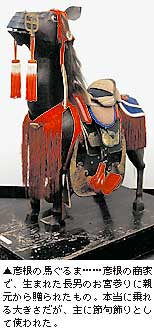 藤野 それはどこまでを玩具とするか、次のテーマとも関わる問題です。例えば日野町の近江日野商人館には日野祭の山車をモデルに、出入りの大工につくらせて、子どもが曳いて遊んでいたという曳山が残っています。同様のものとして今回は彦根の「馬ぐるま」をあえて取りあげましたが、そういう各家のオリジナル、個人の家用につくったものまで入れると、もっと広がってくると思います。