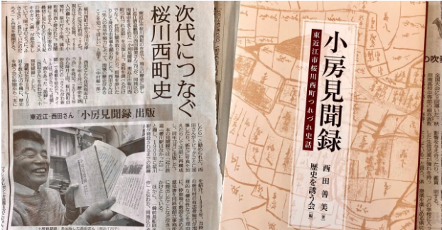 【読売新聞】西田善美著『小房見聞録 東近江桜川西町つれづれ史話』が紹介されました