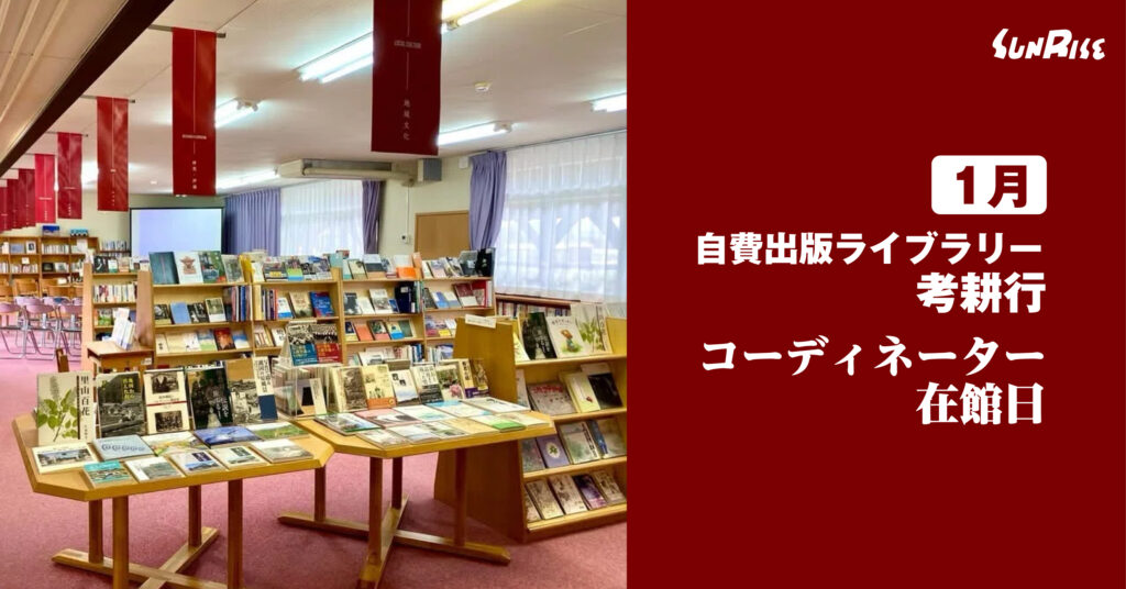 2026年1月の自費出版ライブラリー「考耕行」コーディネーター在館日をお知らせします。