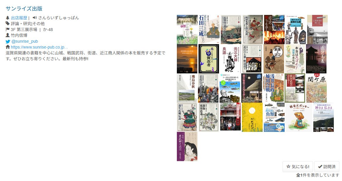 滋賀県関連の書籍を中心に、山城・城郭や戦国武将、近江商人関係の本を販売します。一般書店で販売していない本も持参します。