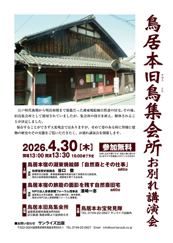 【参加無料】4/30(木)鳥居本旧鳥集会所お別れ講演会を開催します